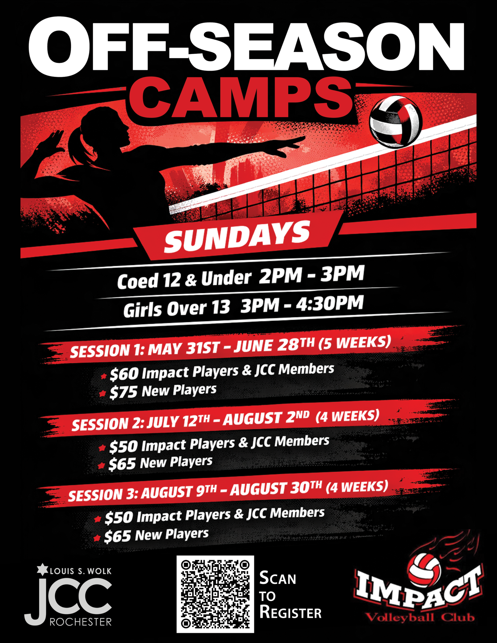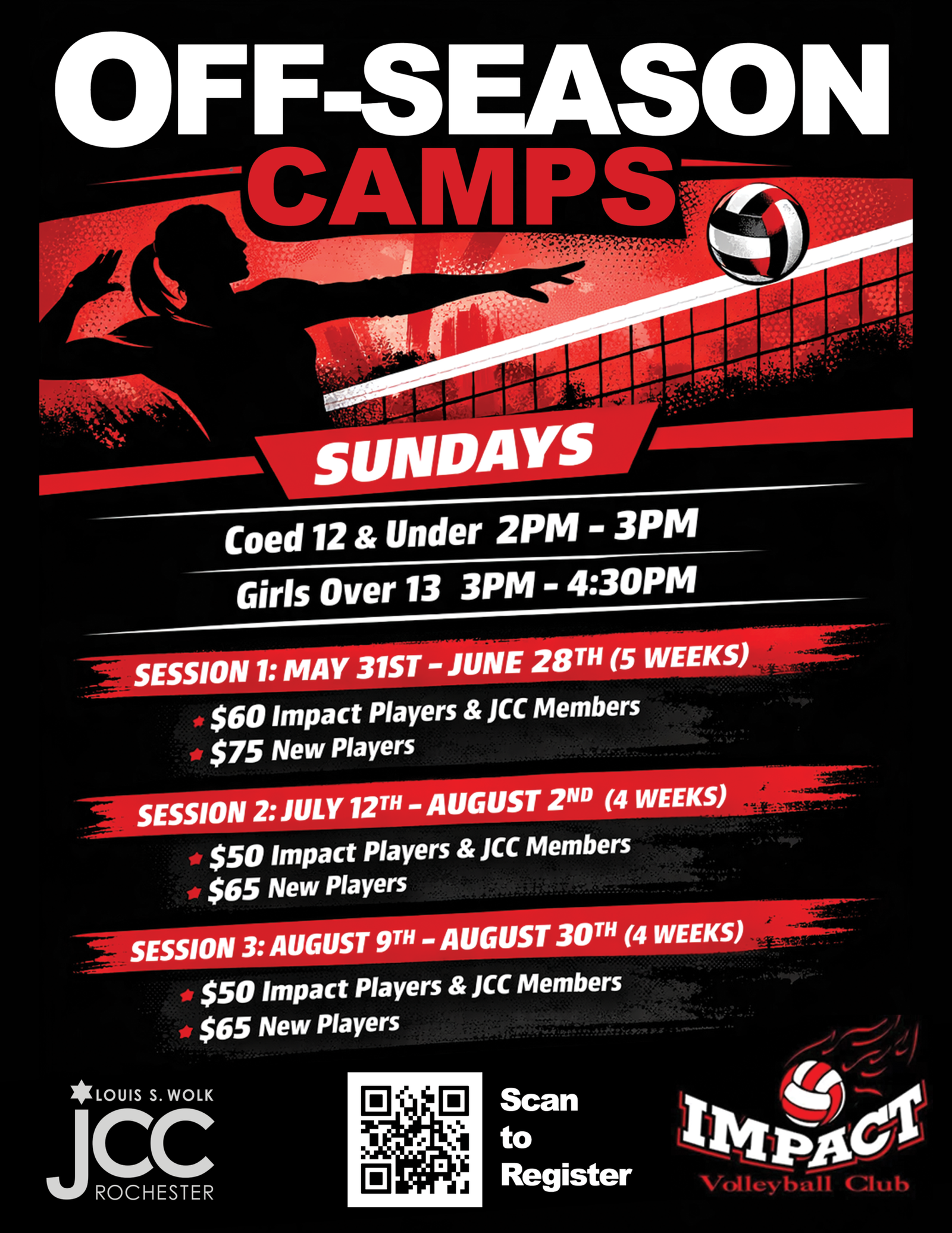 Impact Volleyball Club is an organization that promotes girls’ volleyball in Monroe County and surrounding regions. It is a USA Volleyball sanctioned Club program which operates in the Western Empire Region of USA Volleyball. It offers various levels of team participation for girls ages 12-18, including participants/teams with different levels of ability.